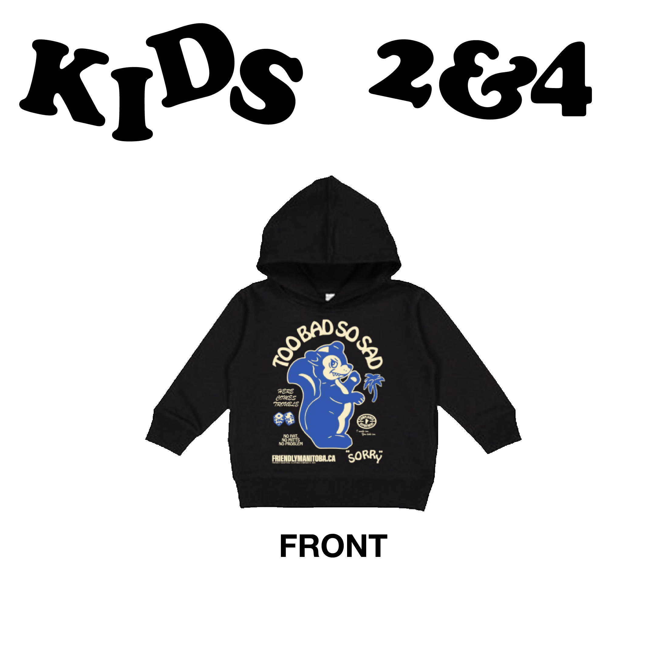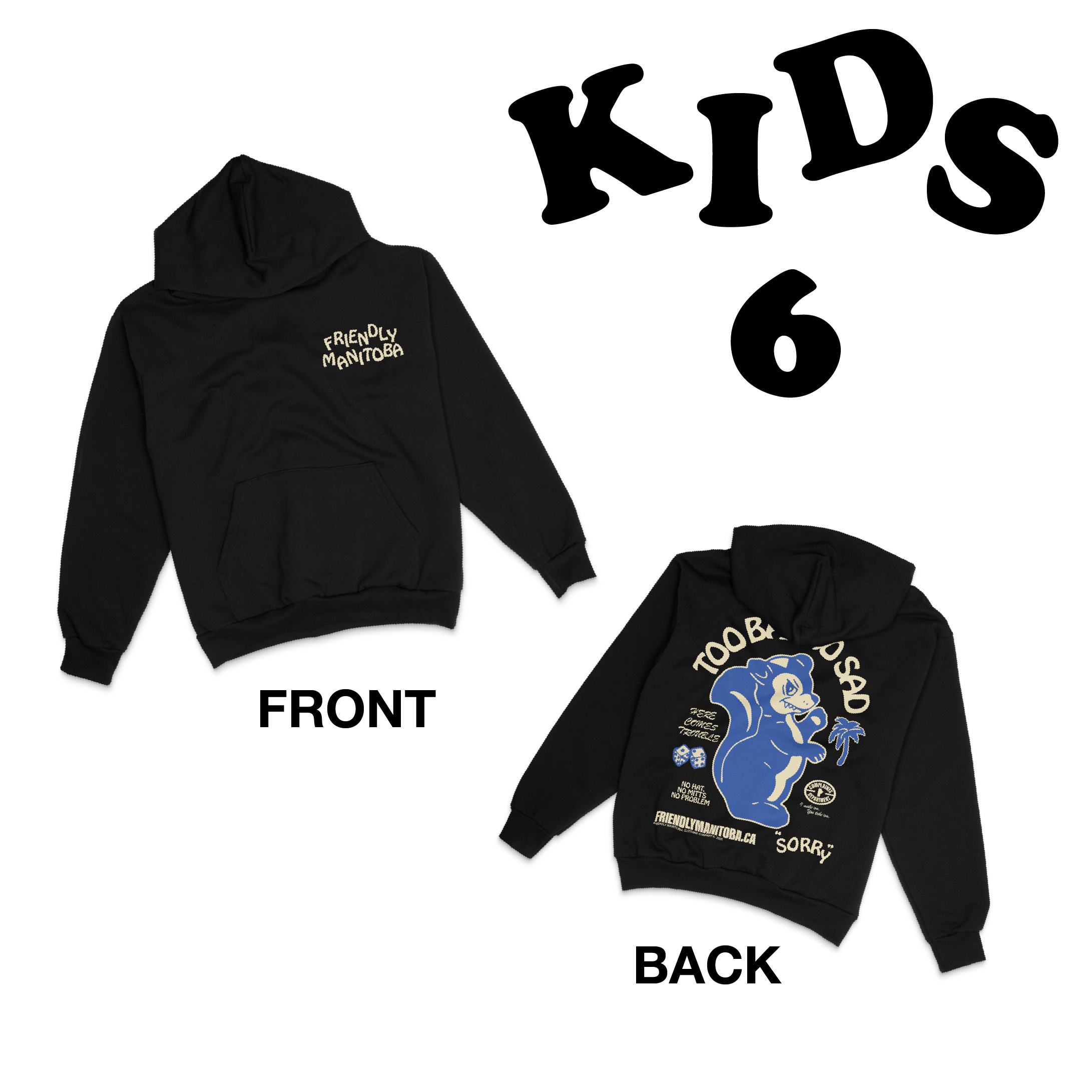 LIMITED KIDS SHIRT • 7.5 oz. • 60/40 combed ringspun cotton/polyester fleece • IMPORTANT NOTE: Sizes 2 and 4 have the front printed only (skunk design). Size 6 has 'Friendly Manitoba' on the front chest and the skunk design on the back.